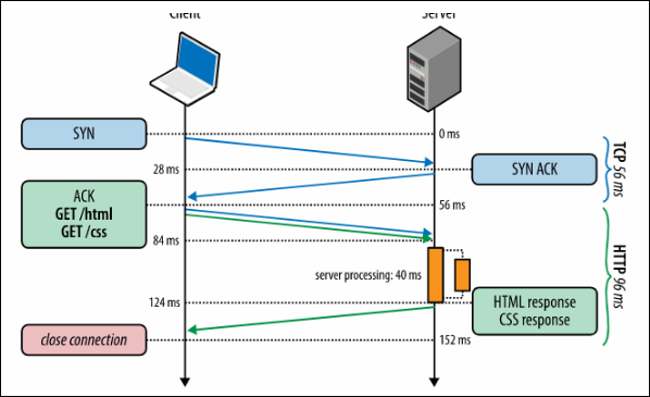 위 그림을 보면, html 파일과 css 파일을 요청할 때 기존의 Connection을 재사용함으로써 시간을 줄였다. 여기에서 더 나아가 Pipelining이라는 기법이 도입되었다. HTTP 요청은 순차적으로 응답을 받아야 되는데 이는 요청이 많을수록 대기 시간이 길어진다. Pipelining은 응답을 기다리지 않고 순차적인 요청을 연속적으로 보내 그 순서에 맞춰 응답을 받는 방식으로 지연 시간을 줄인다.